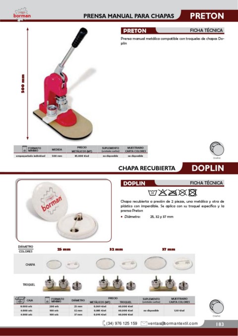 plástico con imperdible. Se aplica con su troquel especíÀco y la