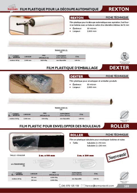 FILM PLASTIQUE POUR LA DÉCOUPE AUTOMATIQUE REXTON