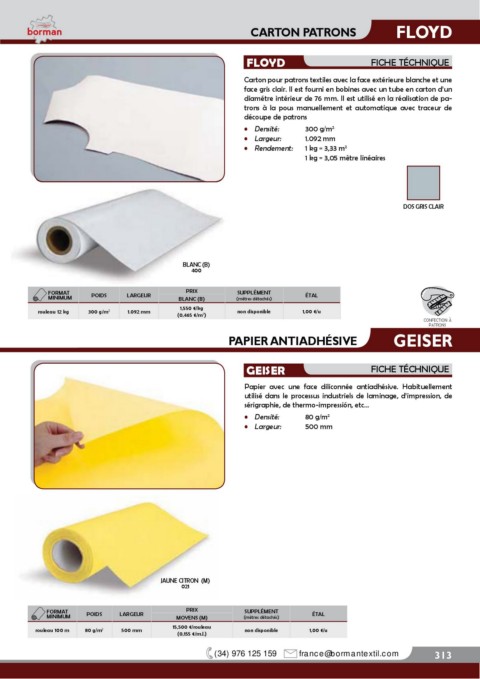 face gris clair. Il est fourni en bobines avec un tube en carton d’un