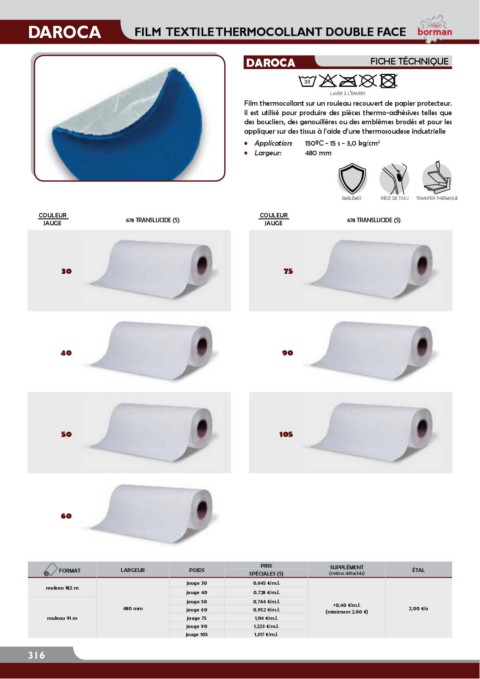 DAROCA FILM TEXTILE THERMOCOLLANT DOUBLE FACE