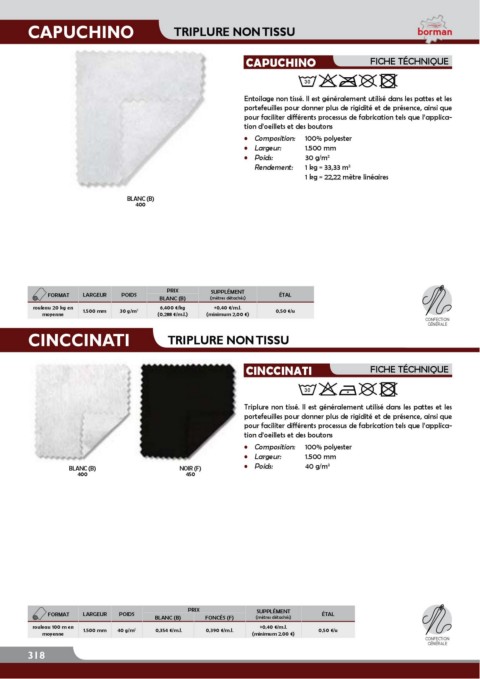 Triplure non tissé. Il est généralement utilisé dans les pattes et les