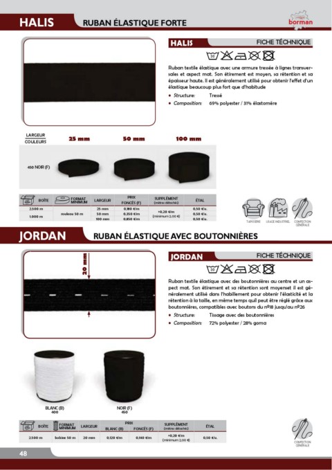 JORDAN RUBAN ÉLASTIQUE AVEC BOUTONNIÈRES