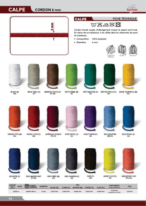 2.000 m bobine 100 m 6 mm 0,057 €/m 0,059 €/m 0,060 €/m 0,062 €/m 0,064 €/m 2,50 €/u.