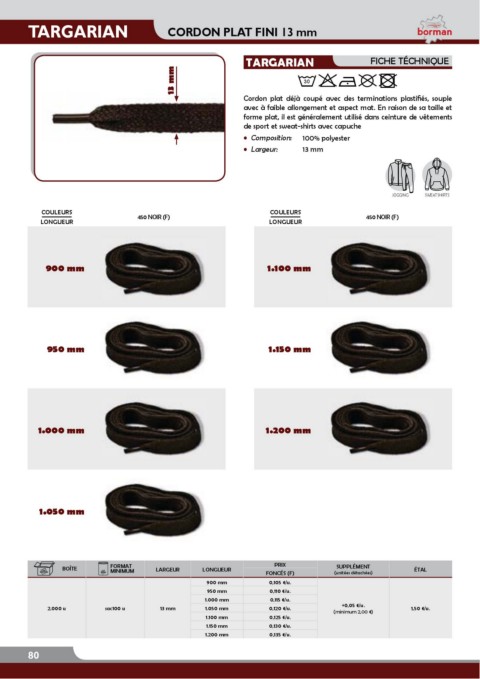 Cordon plat déjà coupé avec des terminations plastiÀés, souple