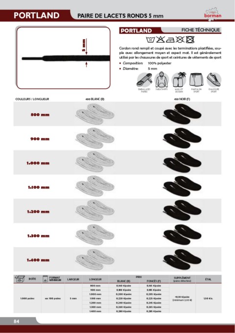 PORTLAND PAIRE DE LACETS RONDS 5 mm