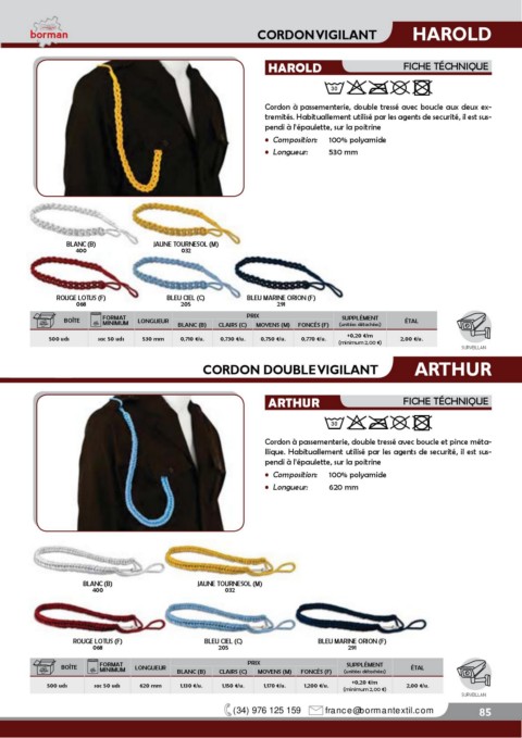 Cordon à passementerie, double tressé avec boucle et pince méta-