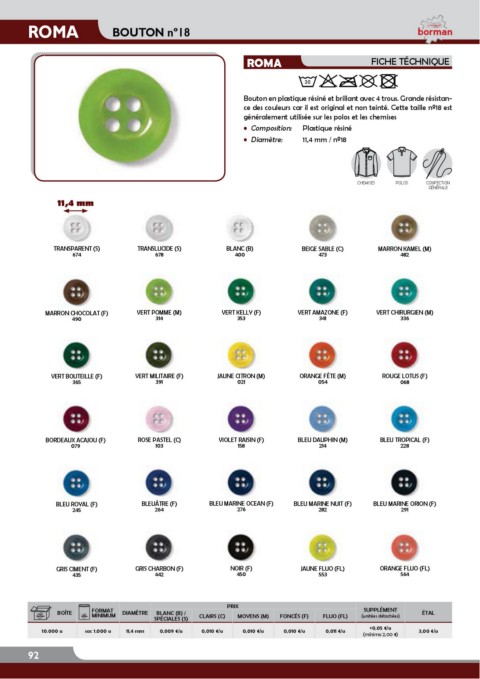 Bouton en plastique résiné et brillant avec 4 trous. Grande résistan-