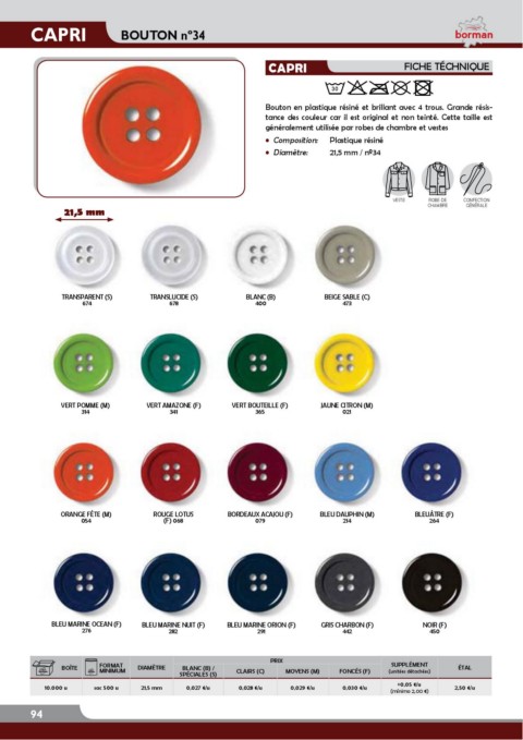 Bouton en plastique résiné et brillant avec 4 trous. Grande résis-