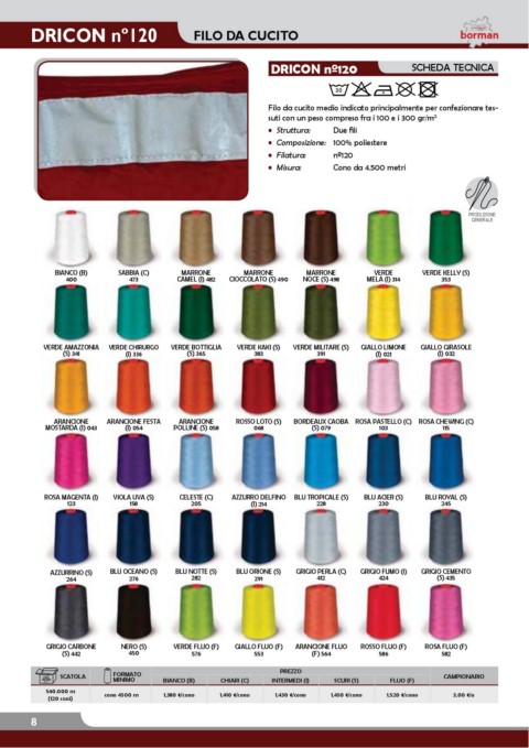 540.000 m cono 4500 m 1,380 €/cono 1,410 €/cono 1,430 €/cono 1,450 €/cono 1,520 €/cono 3,00 €/u