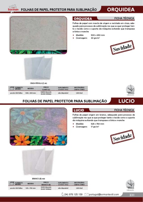FOLHAS DE PAPEL PROTETOR PARA SUBLIMAÇÃO LUCIO