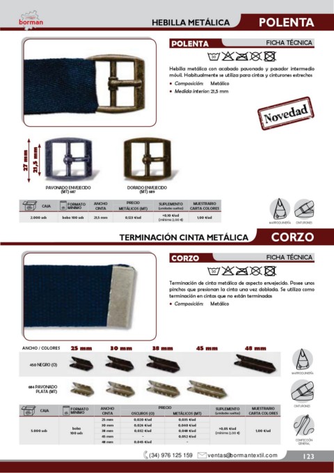 ANCHO / COLORES 25 mm 30 mm 38 mm 45 mm 48 mm