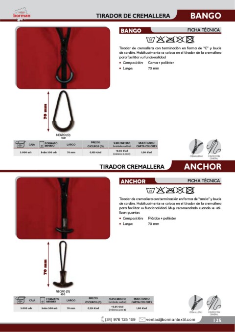 de cordón. Habitualmente se coloca en el tirador de la cremallera