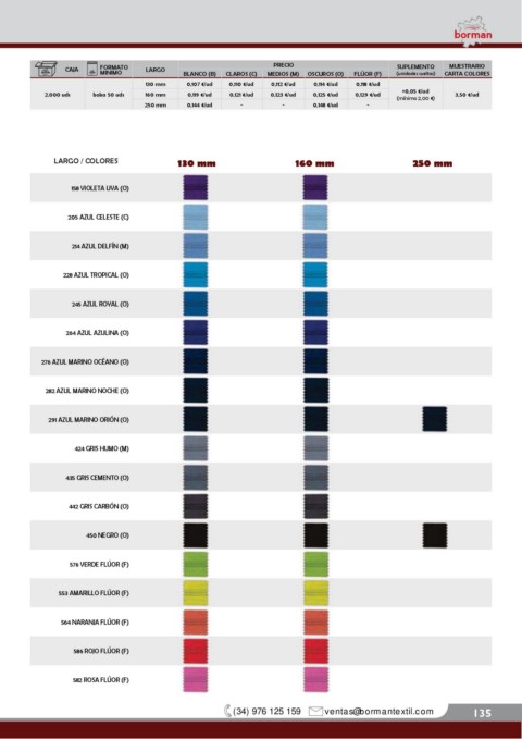 LARGO / COLORES 130 mm 160 mm 250 mm