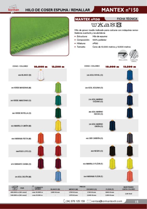 HILO DE COSER ESPUMA / REMALLAR MANTEX nº150