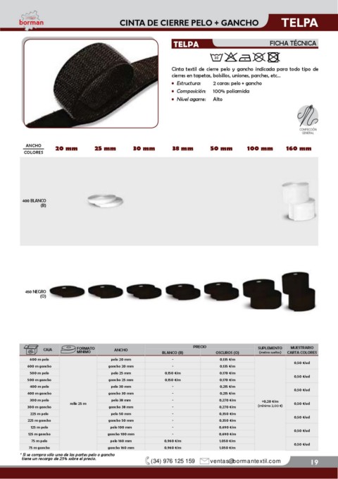 tiene un recargo de 25% sobre el precio. (34) 976 125 159 ventas@bormantextil.com 19