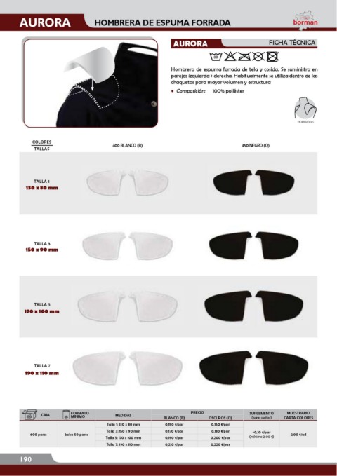 Talla 7: 190 x 110 mm 0,210 €/par 0,220 €/par