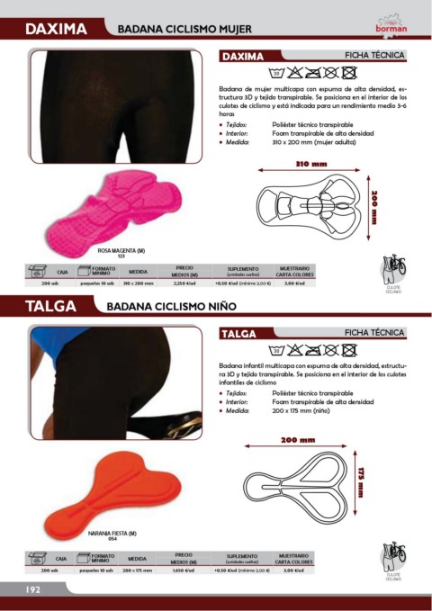 ra 3D y tejido transpirable. Se posiciona en el interior de los culotes