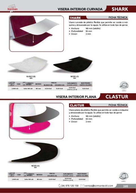 Visera curvada de plástico Áexible que permite ser cosida a má-