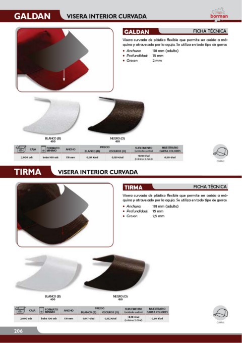 Visera curvada de plástico Áexible que permite ser cosida a má-
