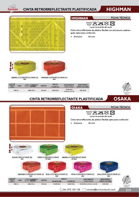 NARANJA FLÚOR REFLECTANTE (F) ROJO LOTO REFLECTANTE (F) ROSA FLÚOR REFLECTANTE (F) AZUL ROYAL REFLECTANTE (F)
