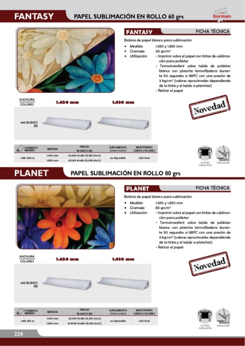 FANTASY PAPEL SUBLIMACIÓN EN ROLLO 60 grs
