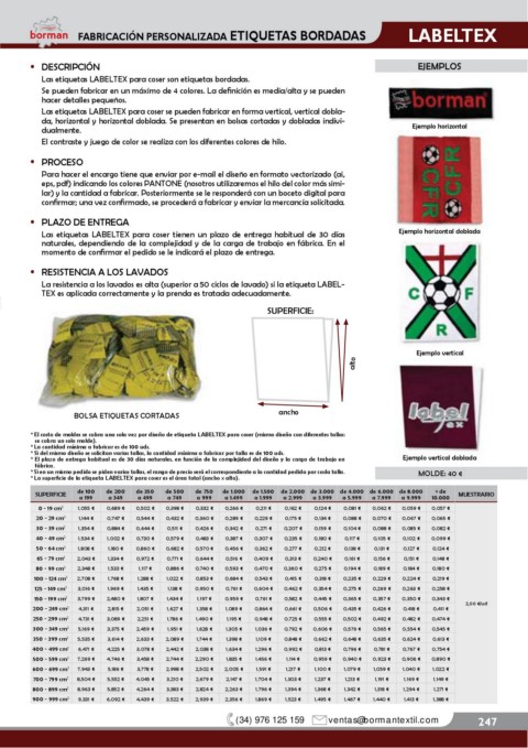 * La superÀcie de la etiqueta LABELTEX para coser es el área total (ancho x alto).