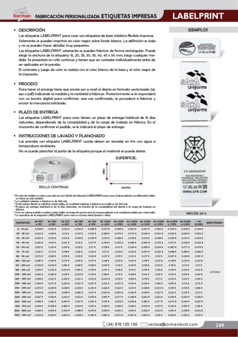 Las etiquetas LABELPRINT para coser son etiquetas de base sintética Áexible impresas.