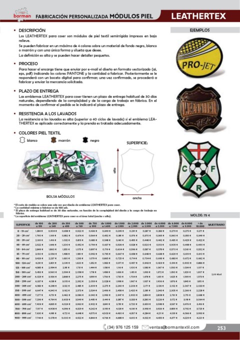* La superÀcie del emblema LEATHERTEX para coser es el área total (ancho x alto). MOLDE: 75 €