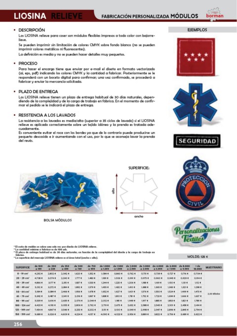 Los LIOSINA relieve para coser son módulos Áexibles impresos a todo color con bajorre-