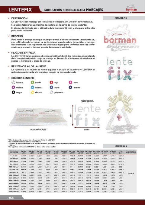* La superÀcie del marcaje LENTEFIX es el área total (ancho x alto). MOLDE: 50 €