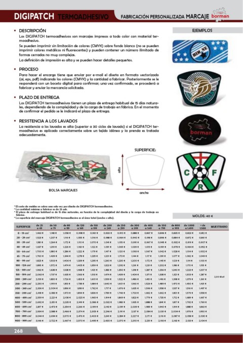 * La superÀcie del marcaje DIGIPATCH termoadhesivo es el área total (ancho x alto).