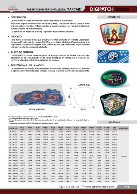 * La superÀcie del marcaje DIGIPATCH cosido es el área total (ancho x alto).