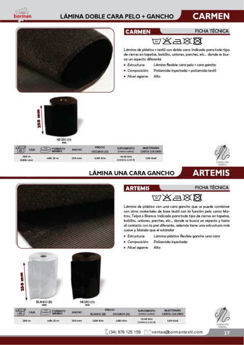 200 m rollo 25 m 250 mm 4,105 €/m +0,40 €/m 1,00 €/ud
