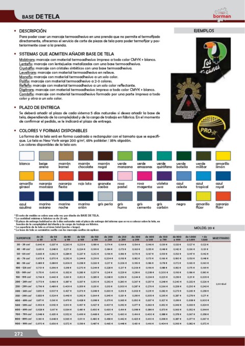 * La superÀcie de la tela es el área total (ancho x largo). MOLDE: 20 €