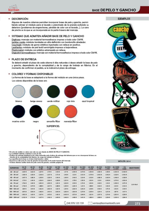 * El precio es sólo para la cara de gancho incorporada en la parte trasera del marcaje. MOLDE: 20 €