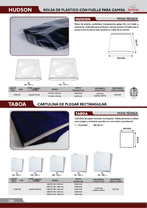 2.000 uds paquete 500 uds talla P3: 280 x 320 mm 0,053 €/ud (mínimo 2,00 €) 1,50 €/ud
