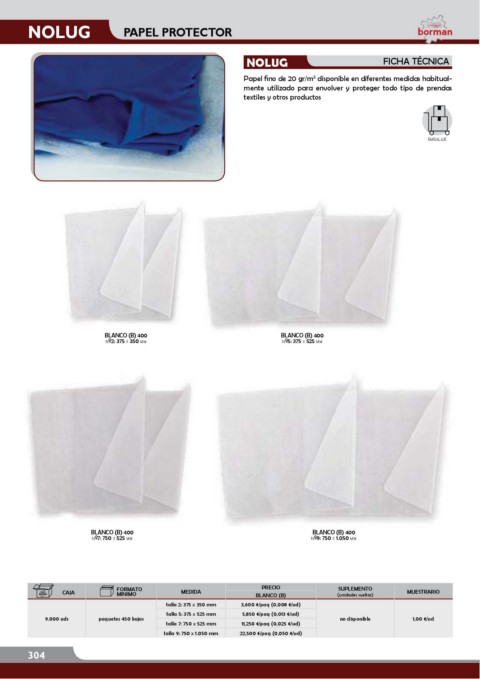 talla 9: 750 x 1.050 mm 22,500 €/paq (0,050 €/ud)