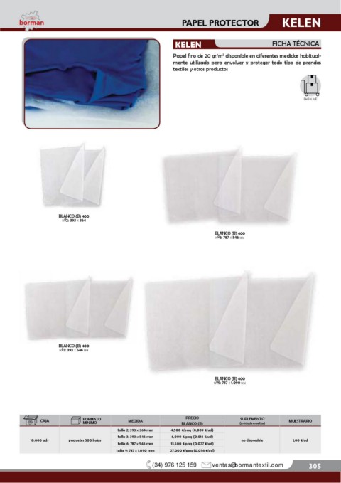 talla 9: 787 x 1.090 mm 27,000 €/paq (0,054 €/ud)