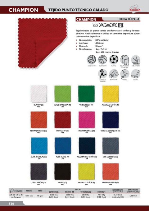 BLANCO (B) MEDIOS (M) OSCUROS (O) FLÚOR (F) (metros sueltos) CARTA COLORES