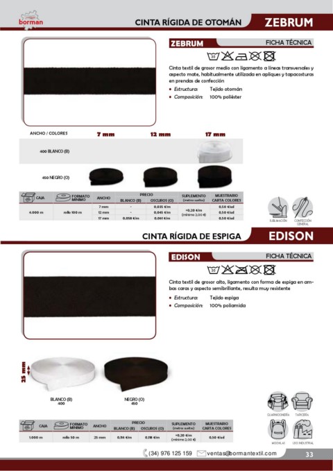 ANCHO / COLORES 7 mm 12 mm 17 mm
