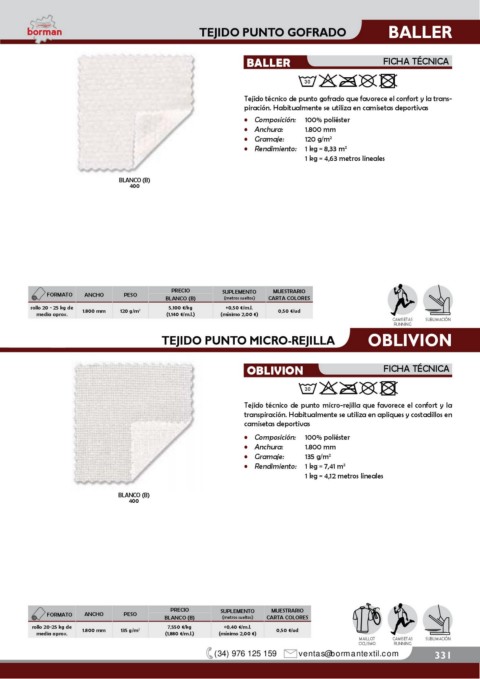 rollo 20-25 kg de 1.800 mm 135 g/m 2 7,550 €/kg +0,40 €/m.l. 0,50 €/ud