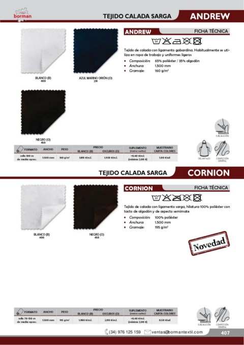 de media aprox. 1.500 mm 160 g/m 1,810 €/m.l. 1,930 €/m.l. (mínimo 2,00 €) 1,00 €/ud DELANTALES CONFECCIÓN
