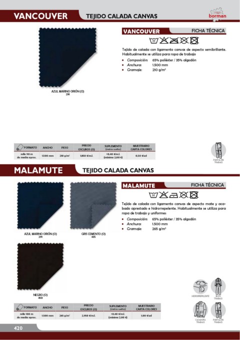 bado aprestado e hidrorrepelente. Habitualmente se utiliza para
