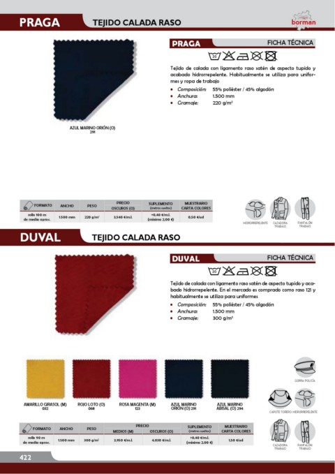acabado hidrorrepelente. Habitualmente se utiliza para unifor-