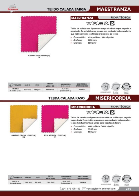 rollo 80 m 1.500 mm 550 g/m 2 7,650 €/m.l. +0,40 €/m.l. 1,00 €/ud