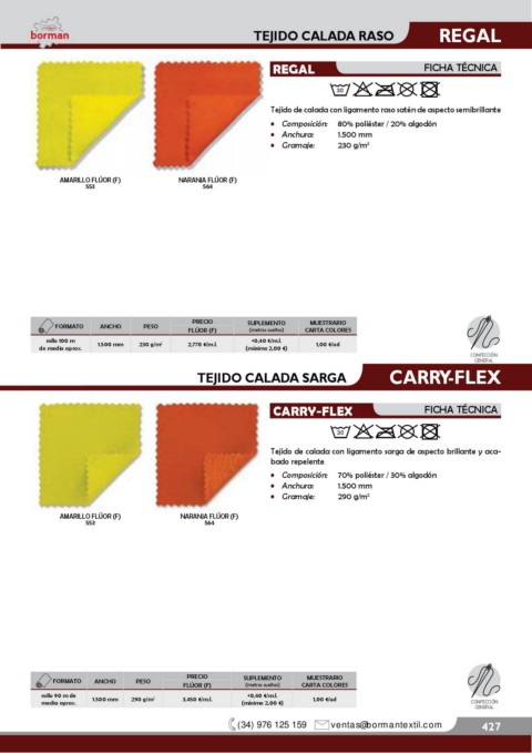 media aprox. 1.500 mm 290 g/m 3,450 €/m.l. (mínimo 2,00 €) 1,00 €/ud CONFECCIÓN