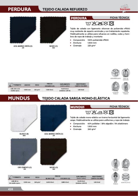 de media aprox. 1.500 mm 260 g/m 3,650 €/m.l. 3,880 €/m.l. (mínimo 2,00 €) 1,00 €/ud BUZO MONO-ELÁSTICO