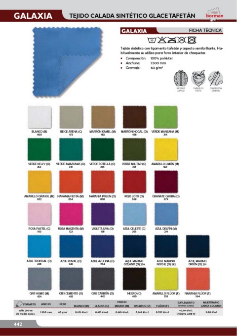 FORMATO ANCHO PESO BLANCO (B) CLAROS (C) MEDIOS (M) OSCUROS (O) FLÚOR (F) (metros sueltos) CARTA COLORES