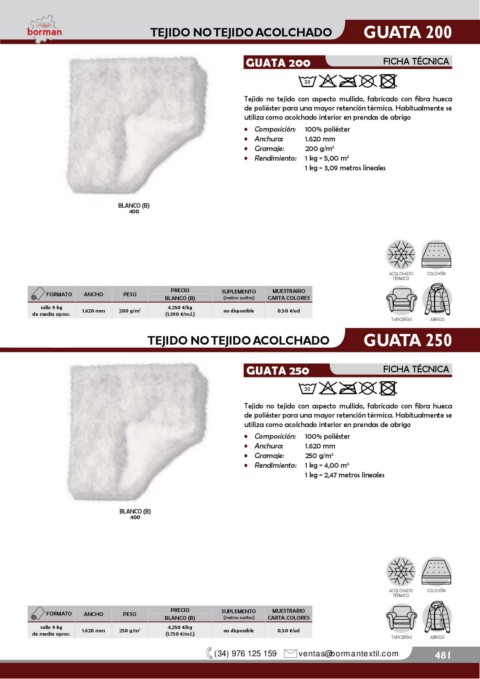 TEJIDO NO TEJIDO ACOLCHADO GUATA 200