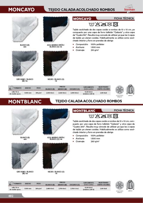 Tejido acolchado de dos capas cosido a rombos de 10 x 10 cm, com-